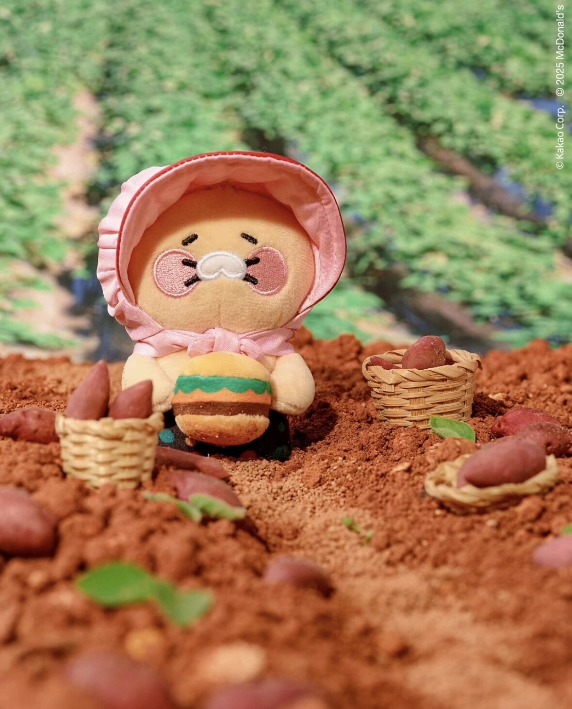 직접 손에 쥐어 본 인형 키링은 12cm로 가방에 달기에도 딱 좋고, 농부 컨셉의 귀여움이 날에 날붙었더라고요. 세트 메뉴의 감자튀김은 약 2분 만에 도착했고, 함께 사진도 찍었습니다.